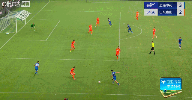 第64分钟,陈晋一左肋弧线球传中,刚刚替补登场的徐皓阳后点头球破门,申花把比分改写为3比2,第三次领先。