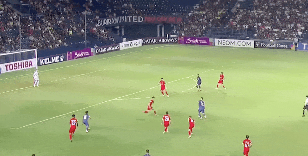 下半场回来,武里南联延续了上半场最后阶段的攻势,仅仅开始了5分钟,祖利手术刀直塞,素帕那拿球推射远角破门,1:1!武里南联扳平比分。仅仅三分钟后,形势再度发生改变,武里南联持续发力,素帕那底线横传门前,后点无人防守的祖利推射空门得手,2:1!武里南联在短短的3分钟,完成比分上的反超。