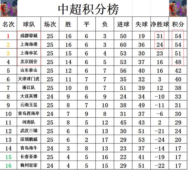 积分榜方面,成都蓉城最后时刻压哨绝平,让他们凭借净胜球优势继续力压上海海港守住榜首位置。上海海港客场击败国安后,则是将和申花的差距拉大到3分,3连败的国安,已经落后榜首2强6分,或许很难再争夺冠军了。