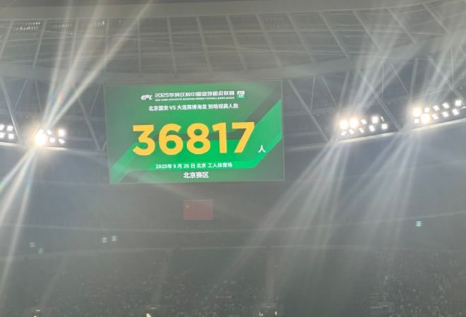 雷速体育9月26日宣 在今晚进行的中超第26轮北京国安对阵大连英博的比赛中,现场大屏幕显示本场比赛上座人数为36817人,这是本赛季北京国安主场上座率的新低。
