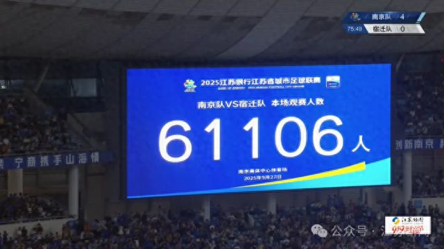 根据截至到8月15日中超比赛观赛人数的官方统计,9月27日,在南京奥体中心举行的这场“苏超”比赛的观赛人数,放在中超的历史上,可以挤进前十,排名第七位。