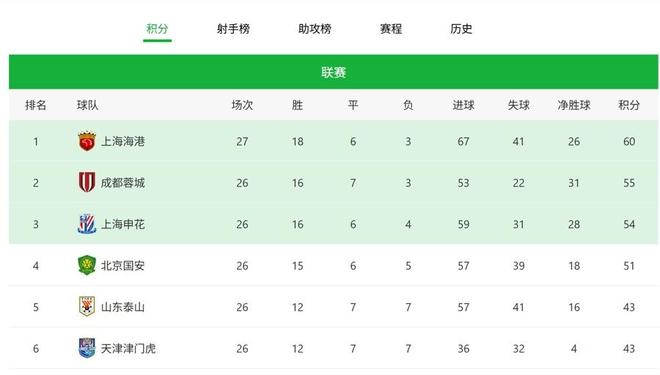 在成都蓉城、上海申花等对手尚未完善的前提下,海港队目前在积分榜的位置。