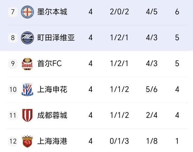 目前中超第2的上海申花,4轮1胜1平2负,积4分位列第10。中超第3的成都蓉城,同样是4轮1胜1平2负,积4分排在第11。当前高居中超榜首的上海海港,4轮0胜1平3负,仅积1分第12垫底!