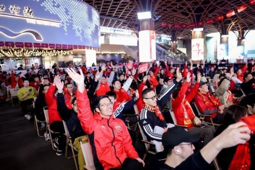 东方网记者程琦 11月23日报道:昨晚,随着中超联赛收官战终场哨声的吹响,上海海港队成功卫冕冠军。而在赛场之外,百联世博源下沉式广场的巨幕前,同样掀起了一股红色的巨浪——“我们是冠军!”的欢呼声响彻夜空。